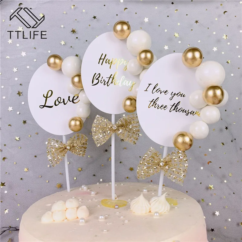 1 шт. фольга любовь счастливые топперы для торта на день рождения милый золотой жемчуг кекс топперы для свадьбы День рождения праздничное ук...