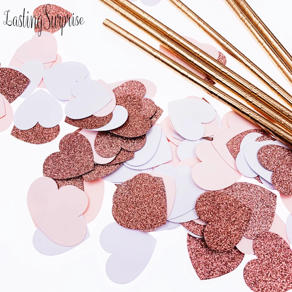 100pcs Glittler Rose Gold 3cm Heart Paper Confetti Wedding Card Paper Confettis Birthday Party Supplies Baby Shower Decor