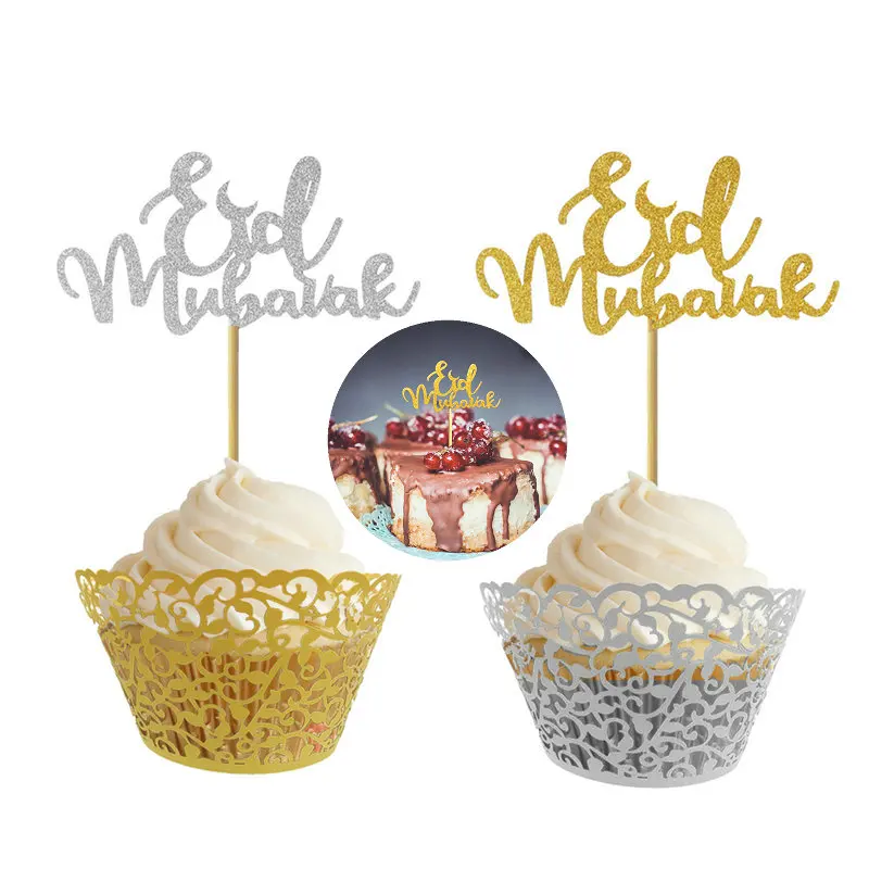 10x блеск Торт Топперы Eid Mubarak вечерние Рамадан декор украшения для кексов мусульманский EID флажки для кексов торт Декор