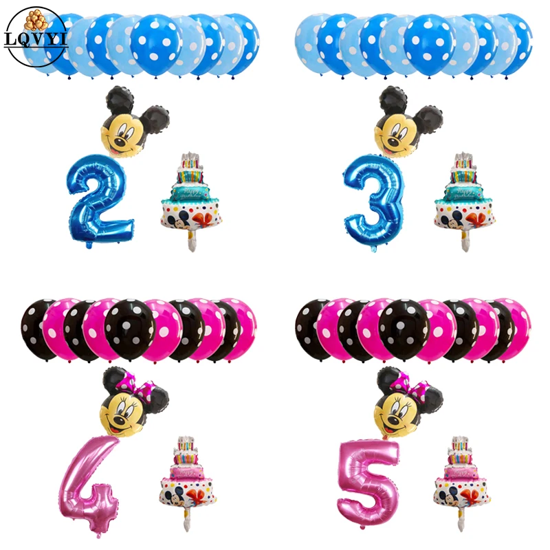 13 шт., вечерние баллоны с Микки и Минни, для малышей 1, 2, 3 лет, вечерние украшения для дня рождения, для детей, Globos mouse Infantiles, детские принадлежности для душа