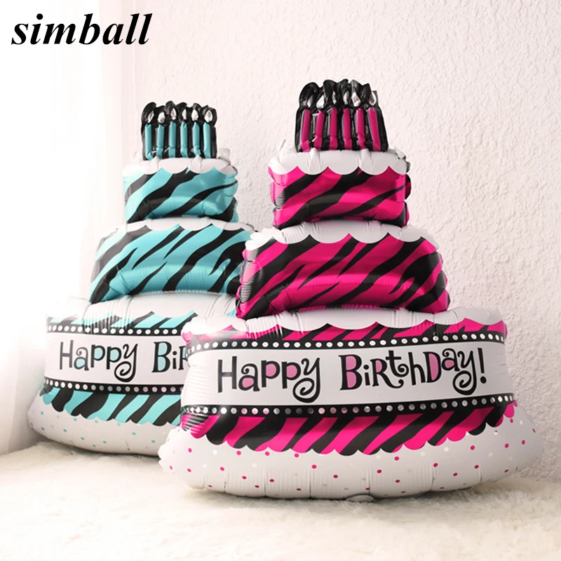 Синий Розовый Большой торт с днем рождения Фольга шары для маленьких детей День рождения украшения Микки и Минни Маус надувные воздушные ша...