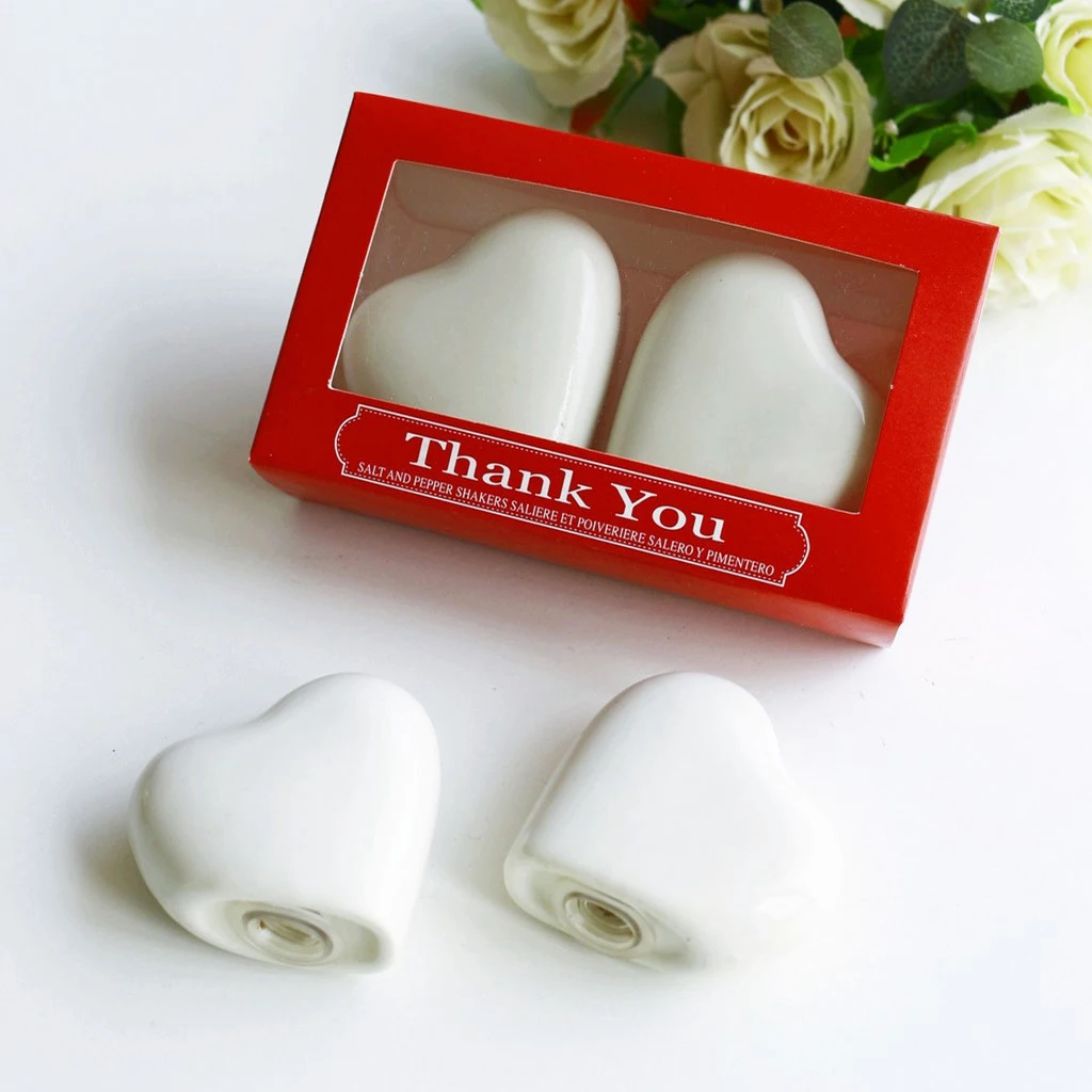 В форме сердца керамические подставки для специй Солонка и перца шейкеры на День святого Валентина гостей вечерние украшения Свадебные сув...