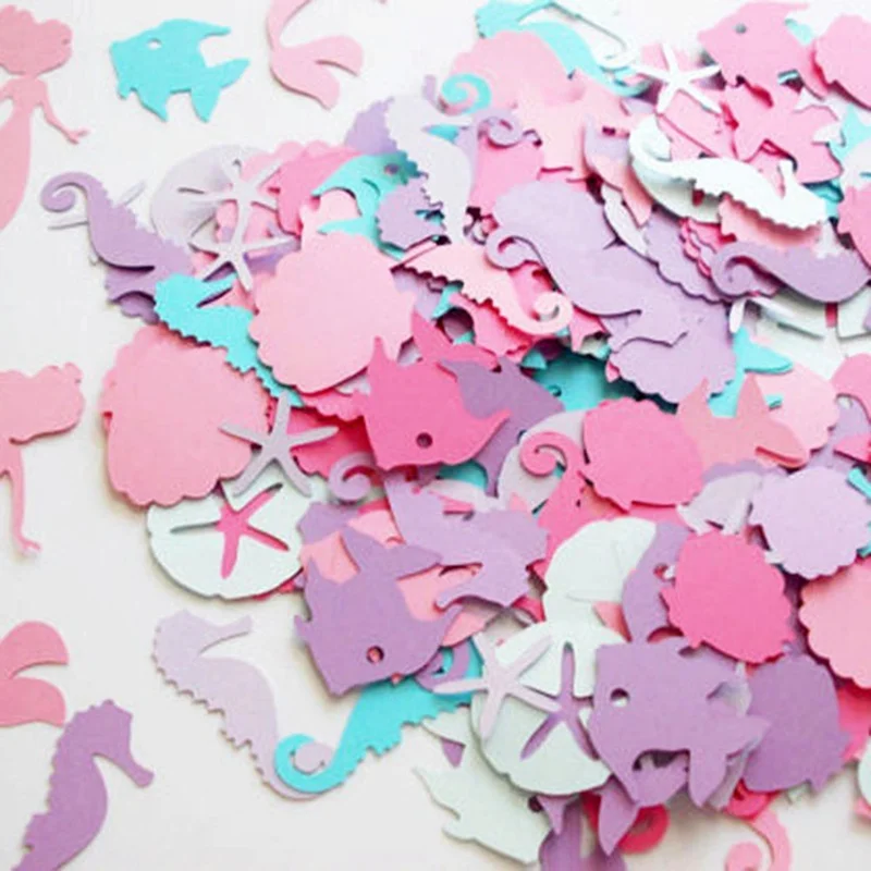 Украшения на день рождения, 100 шт/партия, для девочек, конфетти русалки, пляжные вечерние принадлежности, морской конек, красочное тематическое украшение