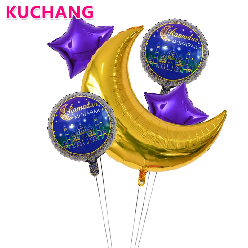 5 шт. 18 дюймов круглые Eid Mubarak фольгированные воздушные шары звезда Mubarak украшения 36 дюймов Луна гелиевые воздушные шары Рамадан Карим аль-Фит...