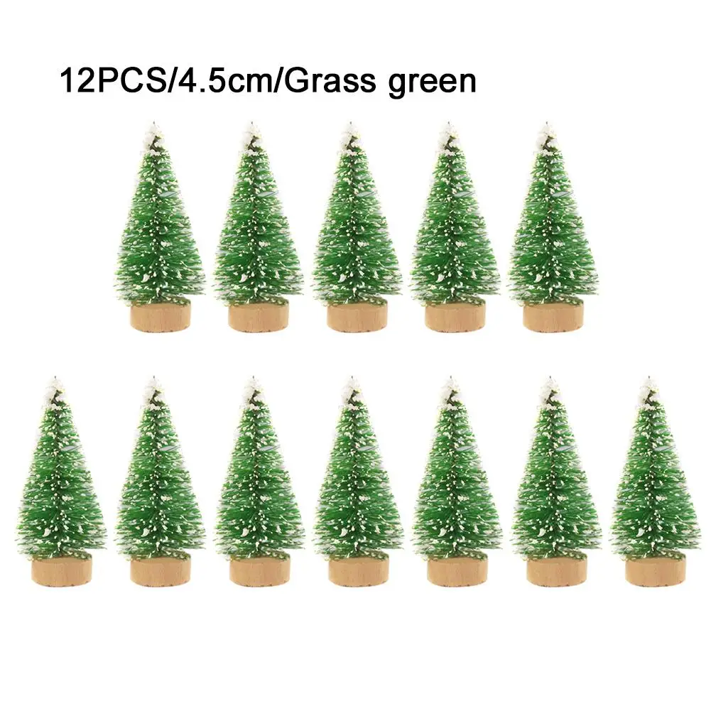 12 шт. мини-елка из сизаля, шелк, кедр-украшение, маленькое Рождественское дерево-золото, серебро, синий, зеленый, белый, мини-дерево