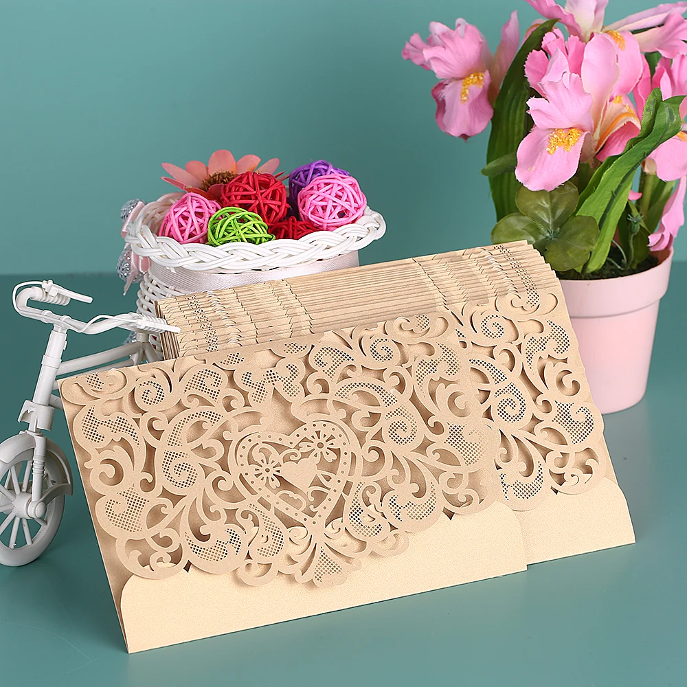 1 шт Свадебные Пригласительные открытки, перламутровая бумага, лазерная резка, полые сердечки, пригласительные открытки, свадебные юбилейн...