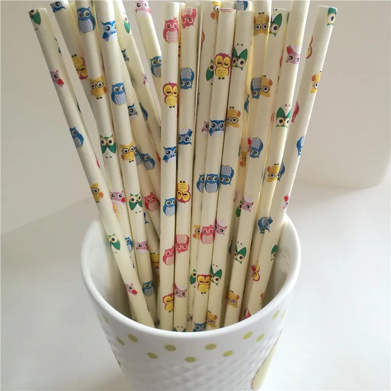 25 шт Вечерние поставки Экологичная бумага соломы для свадьбы День рождения пикника вечерние украшения Милая мультяшная Сова питьевые соло...