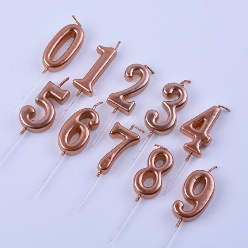 Розовое золото, свечи для торта с номером на день рождения, для детей 0, 1, 2, 3, 4, 5, 6, 7, 8, 9