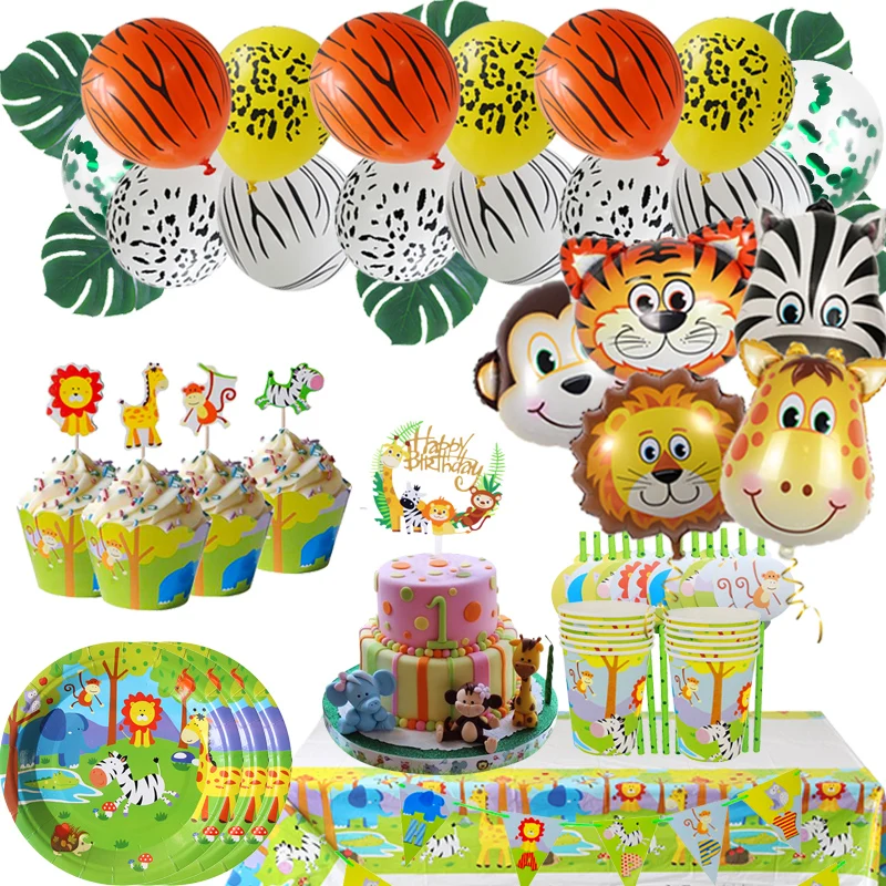 Джунгли одноразовая посуда для вечеринки посуда набор флаги с днем рождения детский душ воздушные шарики в виде животных сафари вечерние п...