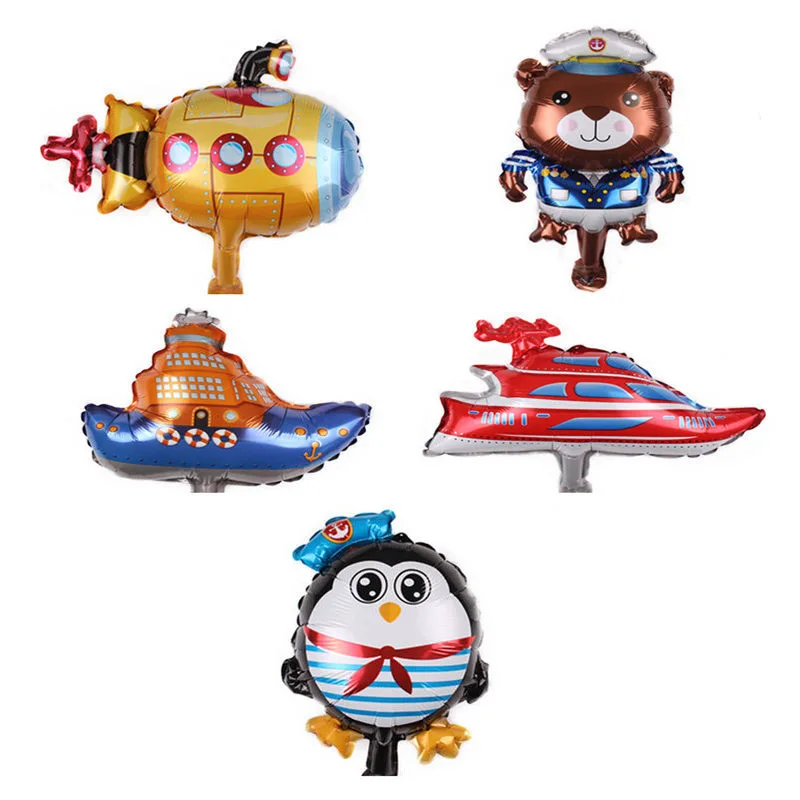 5 шт./лот Мини мультфильм морской автомобиль фольги шары подводная лодка баллон пароход Globos вечерние подарки для детей надувные