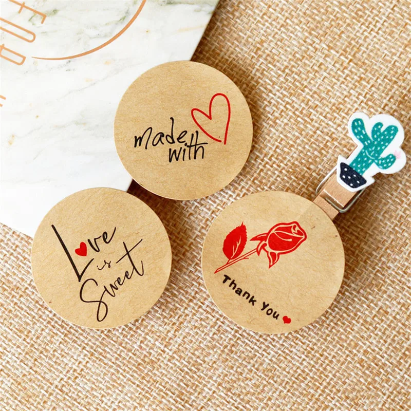 108 шт. круглые этикетки спасибо ручной работы из крафт-бумаги, Упаковочная наклейка для конфетных пакетов, Подарочная коробка, Упаковочная Сумка, свадебные наклейки, спасибо