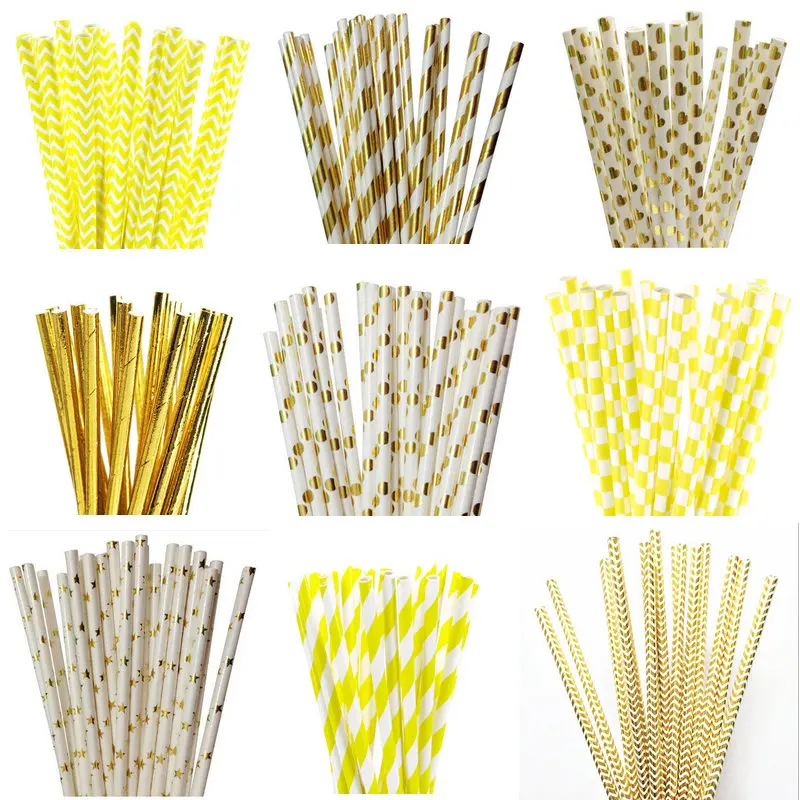 25 шт. Фольга желтого золота Цвет Бумага соломинки для дня рождения свадебные декоративные событие вечерние поставляет окружающей трубочки