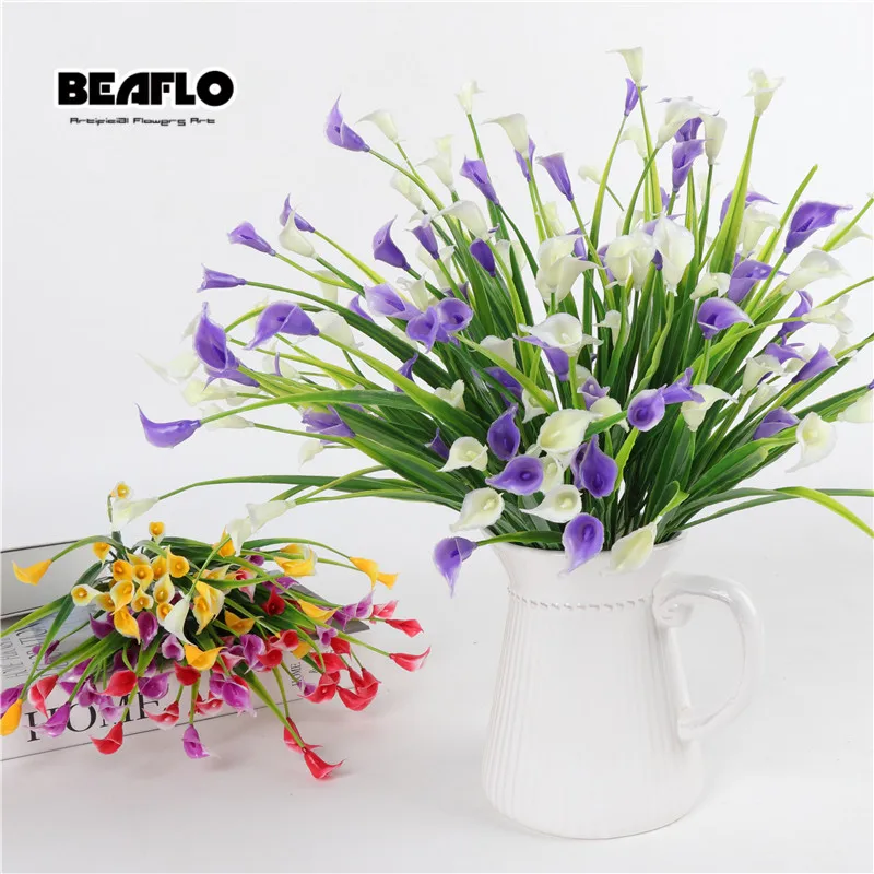 1 букет искусственных цветов Калла Шелковый Искусственный цветок Флер с пластиковыми листьями Флорес для DIY домашнего сада Свадебные украш...