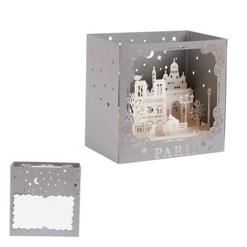 Париж скульптура 3D всплывающие бумага лазерная резка поздравительная открытка ручной работы скульптура спасибо Открытки День рождения фе...
