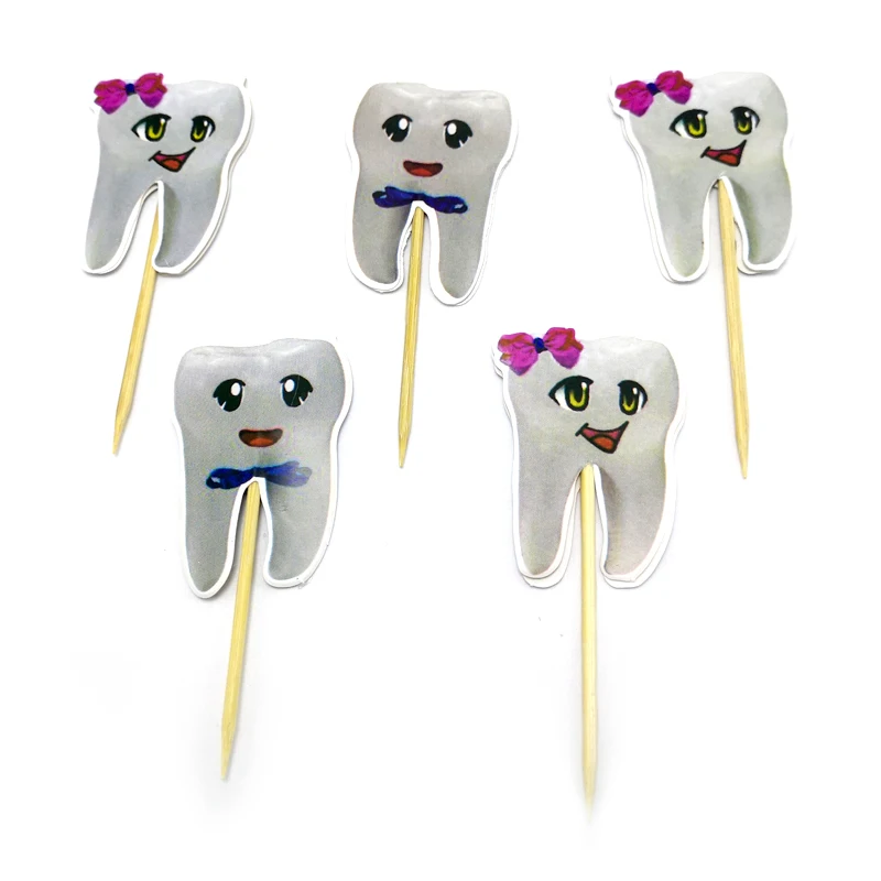 Розовый синий Первый зуб торт Топпер Happy День рождения украшения для мальчиков душа ребенка для капкейка-с барабанные палочки 10 шт./упак.