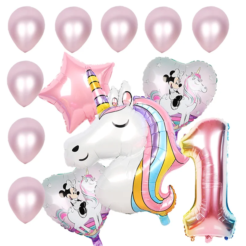1 лот воздушные шары из фольги с радугой и единорогом, номер единорога, украшения для дня рождения, детские товары для вечеринок с Минни