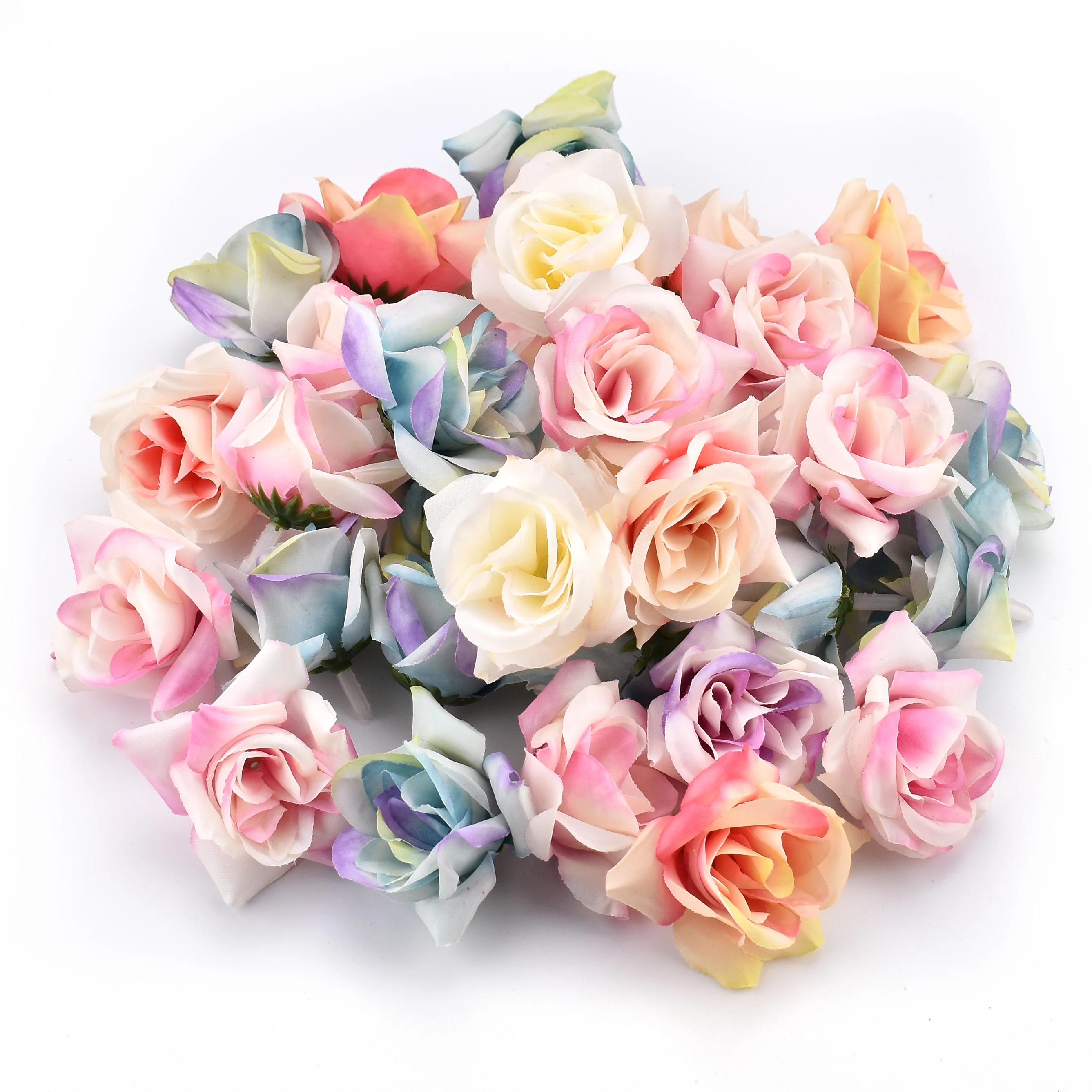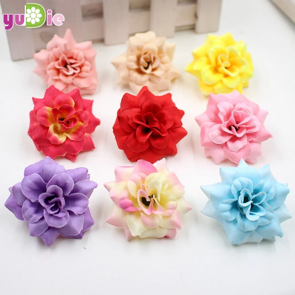 20 шт./лот 4 см ручной работы мини искусственного шелка розовыми цветами Heads DIY Скрапбукинг цветок поцелуй мяч для свадьбы декоративные
