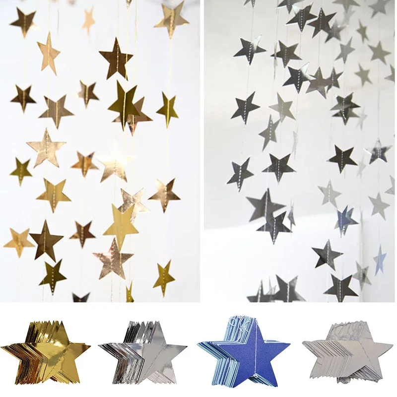 4 м бумага Звездная гирлянда Блестящий золотистый Серебристый цепочка со звездами для украшения дня рождения дома дети стена на стене банда...