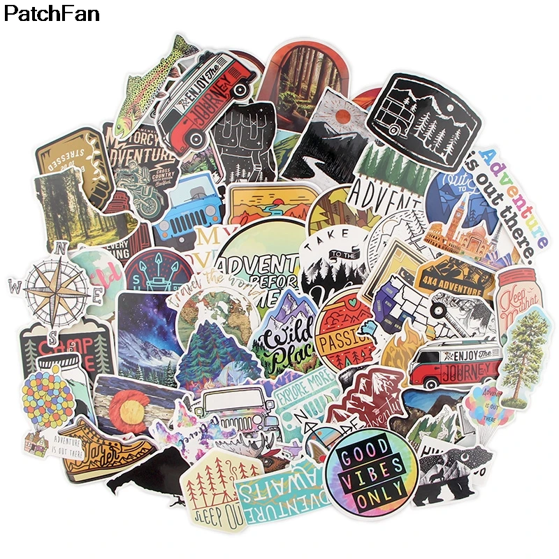 Patchfan, 60 шт., искусство приключений, живопись, ПВХ, водонепроницаемые наклейки для поделок, скрапбукинг, багаж, скейтборд, ноутбук, настенная гитара, A2764