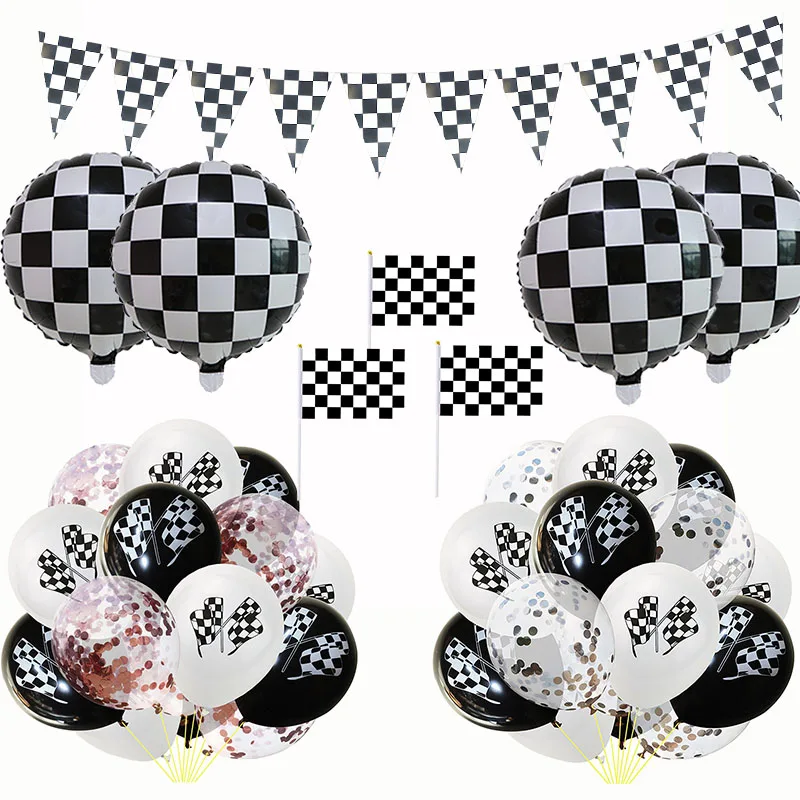 Гонки вечерние трек автомобиль финишная линия черный белый флаг воздушные шары вечерние струны баннер для украшения дней рождения фестива...