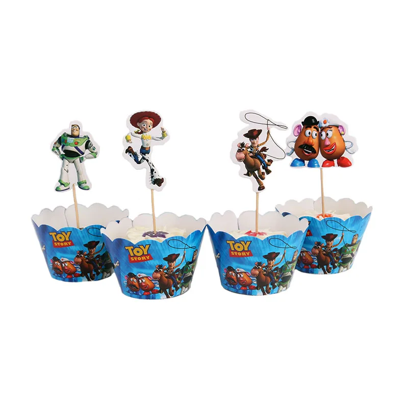 24 шт./лот История игрушек мультфильма бумажные обертки для кексов топперы для детской вечеринки день рождения украшения торта чашки (12 обертывания + 12 Топпер)