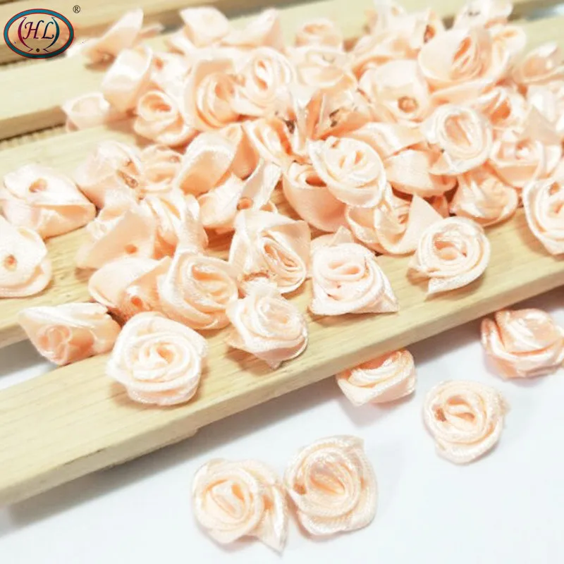 HL 100 шт. персик лента розовыми цветами Свадебные украшения DIY ремесла Аксессуары для одежды Вышивание аппликации 15 мм a663