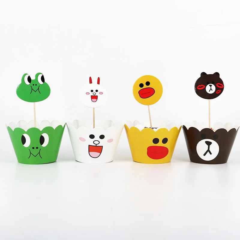 24 шт./лот медведь лягушка утка кролик животные обертки для кексов Топпер дети украшение для вечеринки в день рождения Формы для кексов (12 обертки + 12 Топпер)