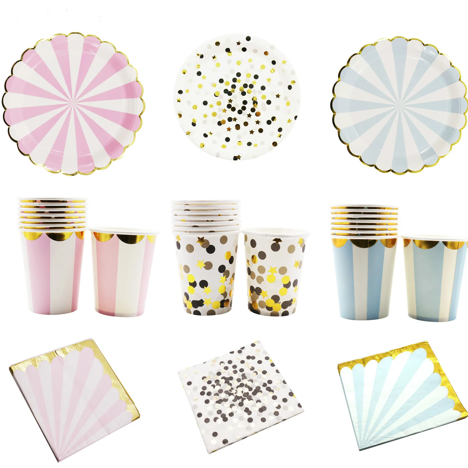 В полоску вечерние одноразовые бумажные тарелки салфетки для стаканчиков соломы Дети столовая посуда наборы дети день рождения для свадьб...