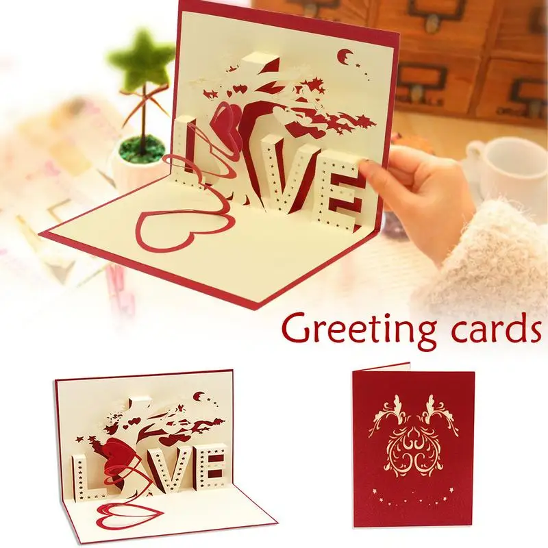 1pc3D DIY Инновационный ручной стерео день рождения поздравительная открытка приглашение дерево любви для влюбленных Ремесло Свадебные душ де...