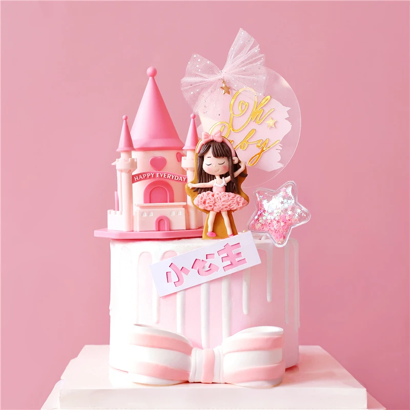 Спиральная пряжа звезда для дня рождения торт Топпер розовый марля принцесса Декор сказочный замок свадебные принадлежности выпечки любов...