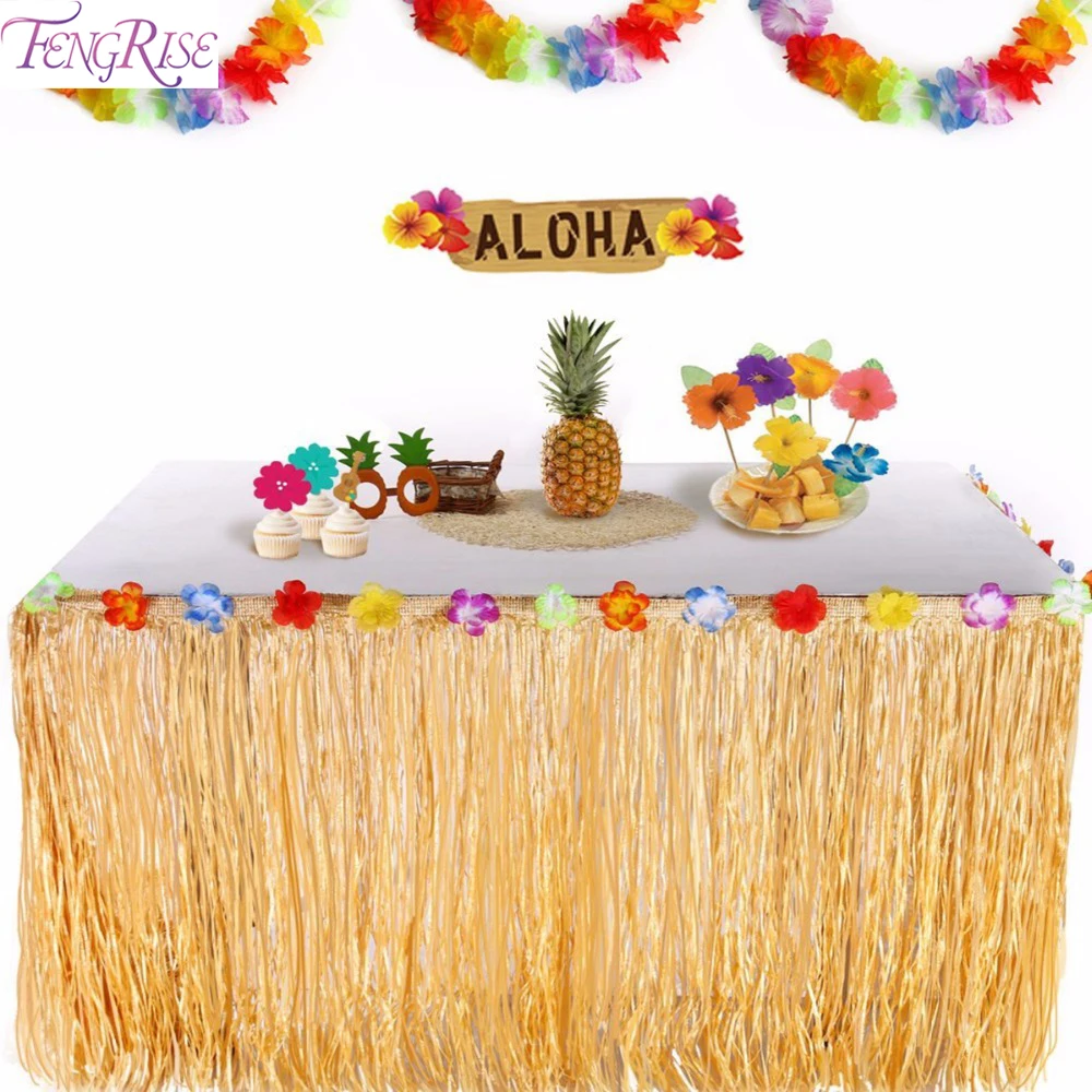 FENGRISE/юбка для стола с искусственными цветами и травой, гавайский декор для вечеринки, фламинго, декор для вечеринки, Гавайские праздники, фламинго, лето