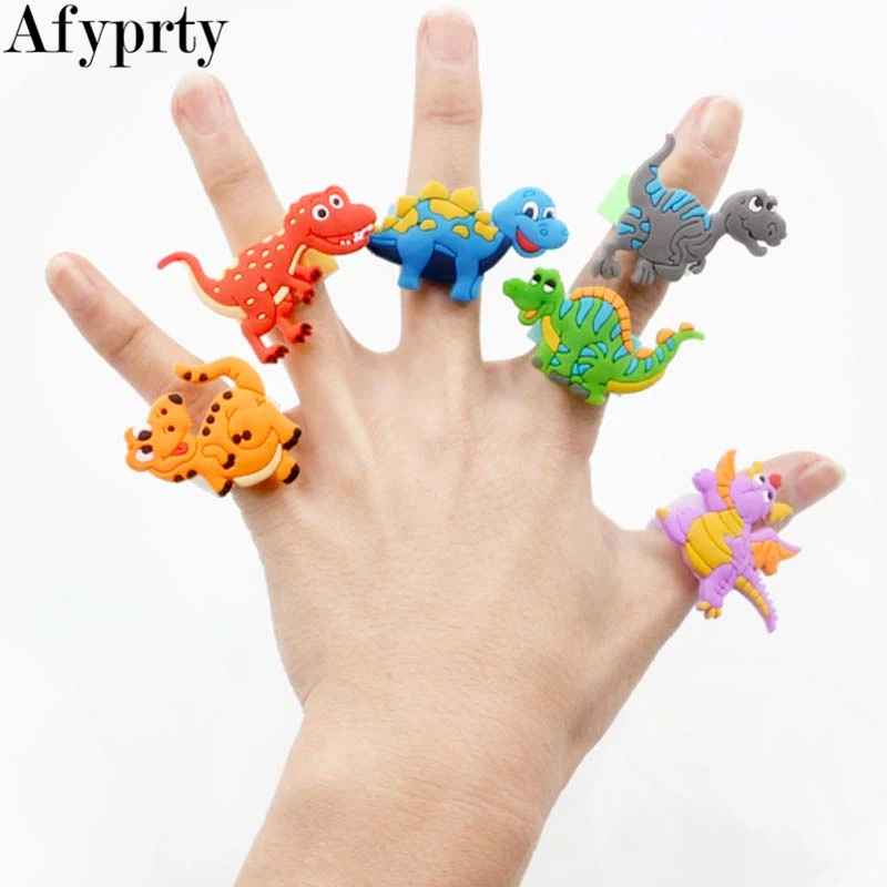 6 шт., креативное резиновое кольцо с динозавром из мультфильма, вечерние Подарочное кольцо, праздничные украшения на день рождения, Детские ...