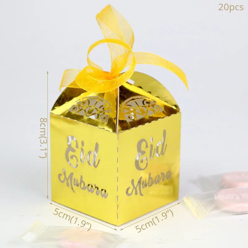 20 шт. цвета: золотистый, серебристый ИД Мубарак полые подарочные коробки для конфет сумки украшения для Рамадана коробка конфет ИД вечерние ...