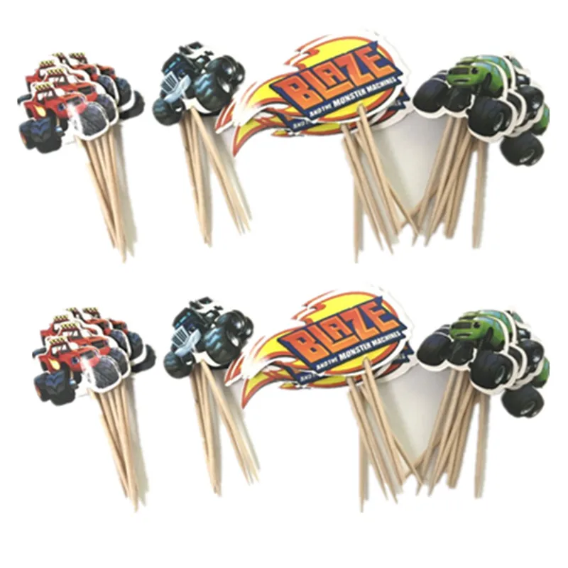 24 шт./лот оформление для празднования дня рождения Blaze Monster Machines тема кекс Toppers с палочками малыш душ Мальчики Сувениры Торт Топпер