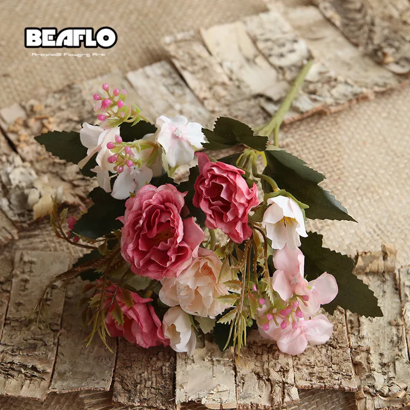1 букет искусственных цветов Пион цветок чайная Роза Гортензия Шелковый Искусственный цветок Флорес для DIY домашнего сада Свадебные украшения