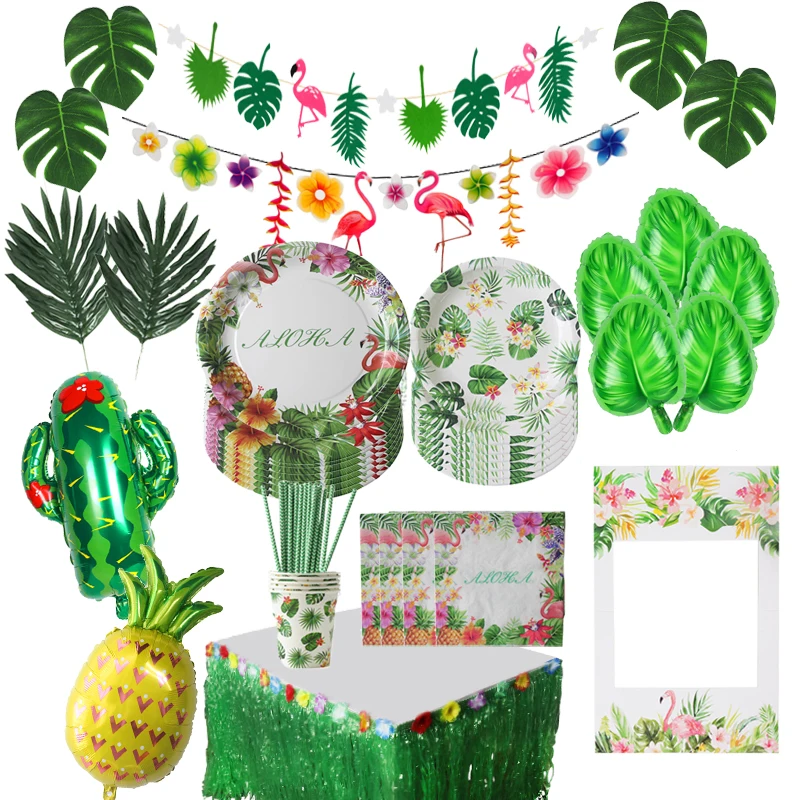 Джунгли День рождения украшение Искусственные цветы Пальмовые Листья баннеры Фламинго тропический праздничные Свадебные украшения