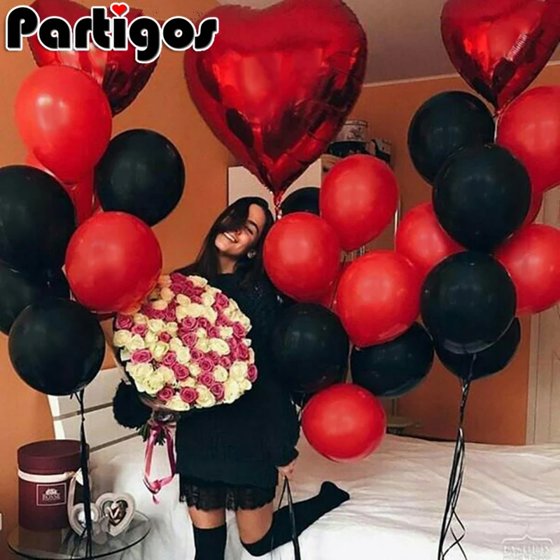 20 шт./лот, красные, черные латексные шары, 5 шт., 18 дюймов, красный воздушный шар из фольги в форме сердца для свадьбы, Дня Святого Валентина, дня рождения, украшения