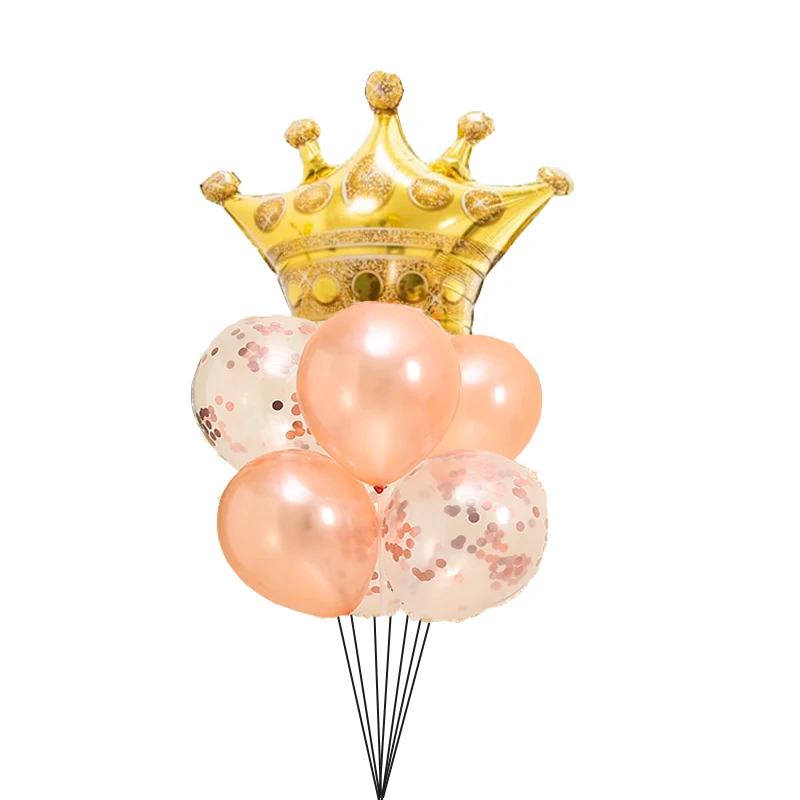8 шт./лот, воздушные шары из фольги для принцессы в виде короны, розовое золото, черные латексные глобусы, украшения для дня рождения, детские карнавальные принадлежности