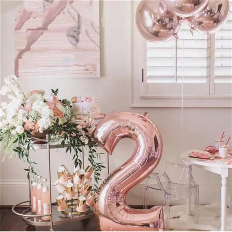 1 шт. 32/40 дюймов розовое Золотое серебряное число 2 Фольга шарики Baby Shower розовый рисунок воздушный шар с гелием 1st День рождения украшения