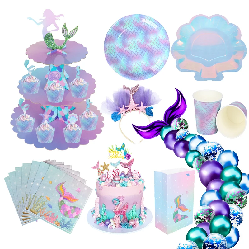 Вечерние украшения в виде русалки, подставка для тортов на день рождения, бумажная тарелка, чашки под морем, вечерние принадлежности для девочек на день рождения, вечерние украшения для детского душа
