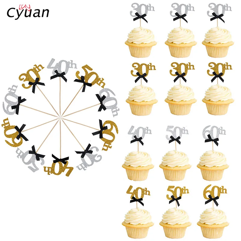 10 шт. 30 40 50 60 лет для капкейка-День рождения Юбилей взрослых 30th 40th 50th 60th аксессуары для торта на день рождения поставки