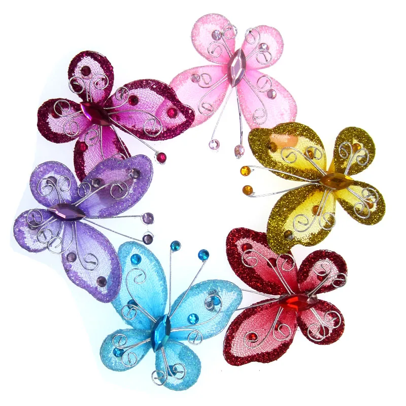 10 шт органзы сетки проволоки бабочки Блеск Стразы Бабочка Шарм для свадьбы колья украшения для вечеринки сделанные своими руками 5,2x5,6 cm