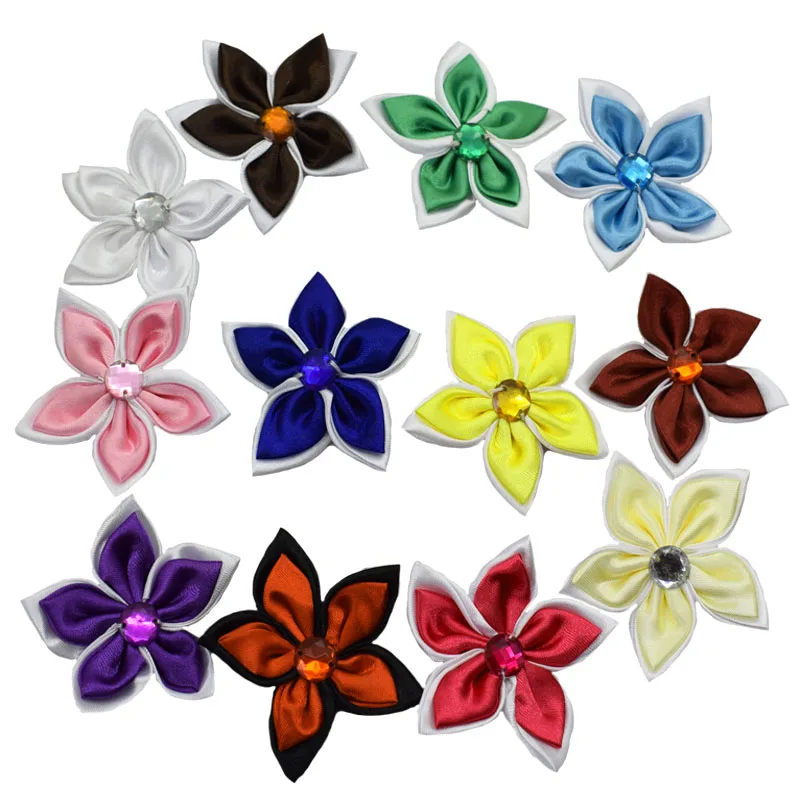 8 шт., сатиновые цветы для рукоделия, стразы, звезда, 2 слоя, искусственный цветок, аппликация для шитья, бант для волос, сделай сам, товары для ...