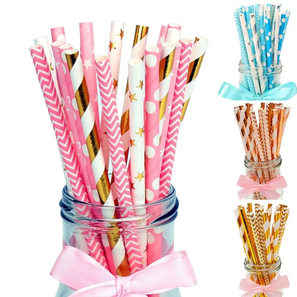 25 шт. бумажные соломинки первый с днем рождения украшения 1st дети мальчик девочка мой 1 год поставки звезда розового золота декор
