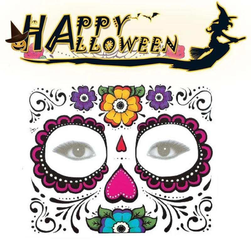Водонепроницаемое лицо тату День Череп мертвеца лицо одеваются Татуировка Хэллоуин наклейки Хэллоуин маски для вечеринки