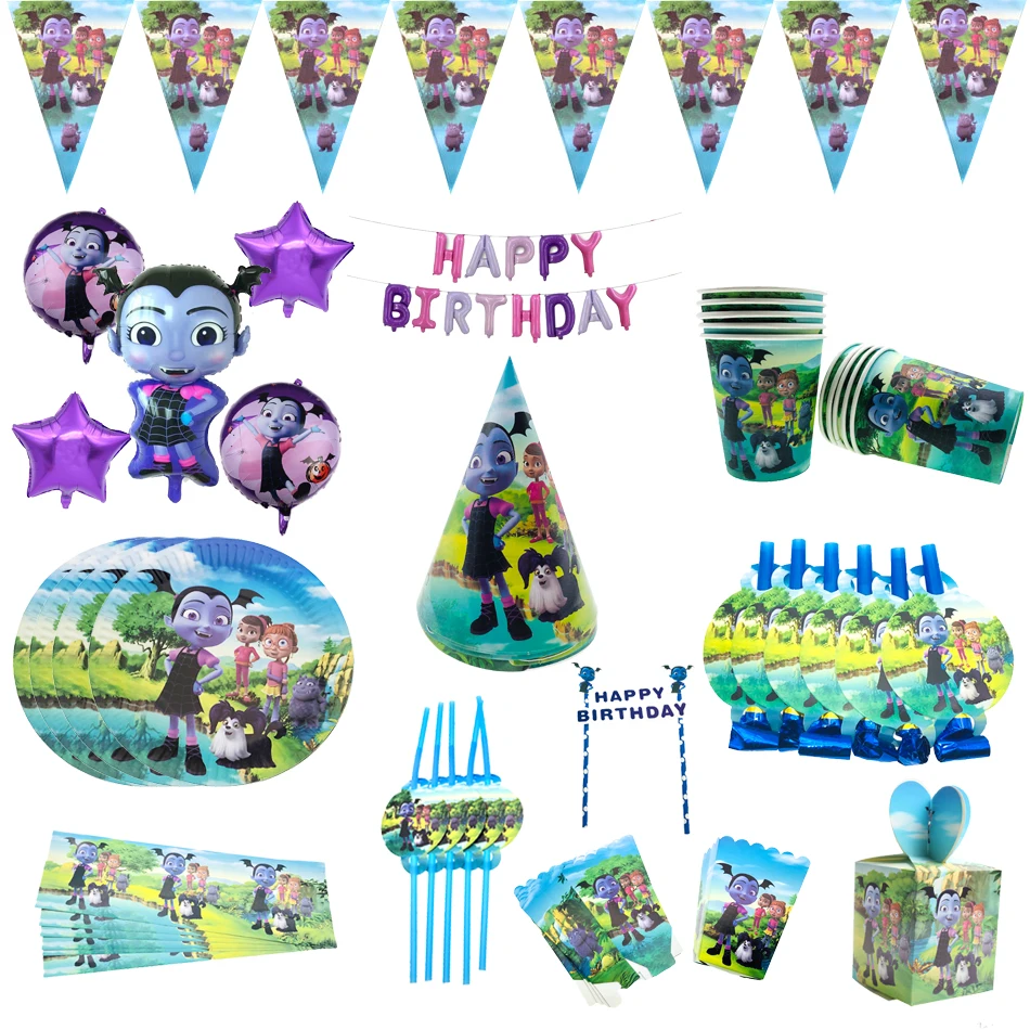 Vampirina/одноразовая посуда для девочек на день рождения, стаканчики с воздушным шаром, соломенные принадлежности для детского душа для девочек