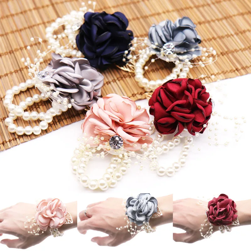 Свадебный свадебный браслет с жемчугом; Вечерние браслеты с цветочным узором для девочек; Свадебный корсаж с розами; Вечерние Декоративные искусственные цветы