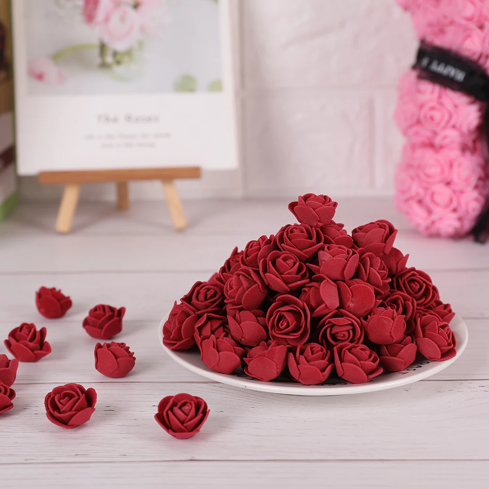 100 шт./лот 3 см мини пены PE Искусственный цветок розы головы для домашнего свадебного украшения вечерние венки DIY ремесла оптовая продажа