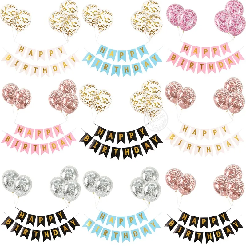 1 Набор «С Днем Рождения» баннер с надписью розовое золото конфетти шары гелиевые шары Дети День рождения декоративный для Бэйби шауэра пос...