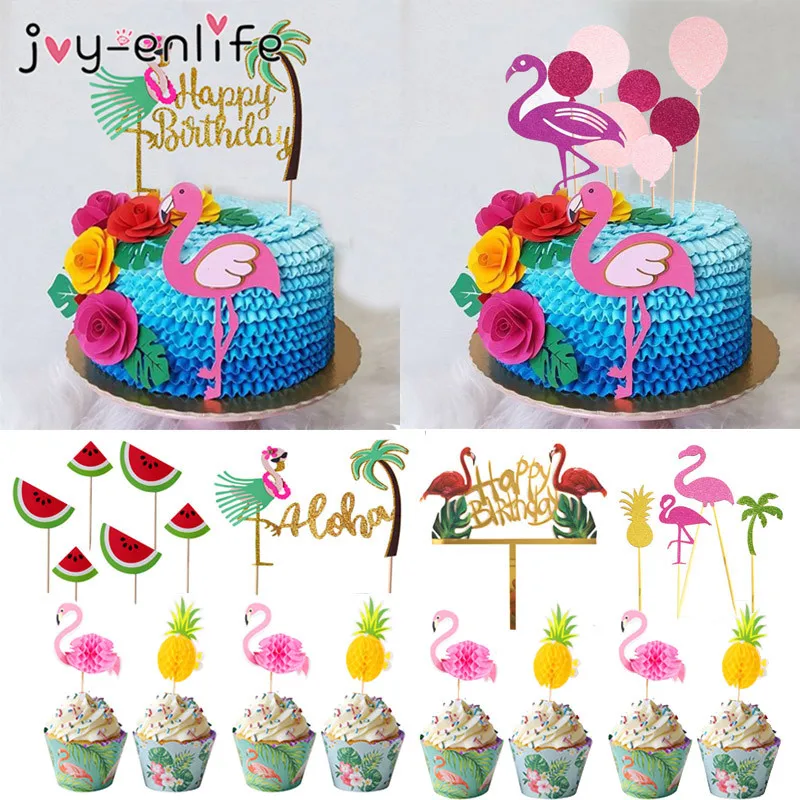 Фламинго ананас Aloha письмо торт топперы летние украшения для вечеринки на день рождения кекс Топпер Для Гавайская тропическая Свадебная вечеринка